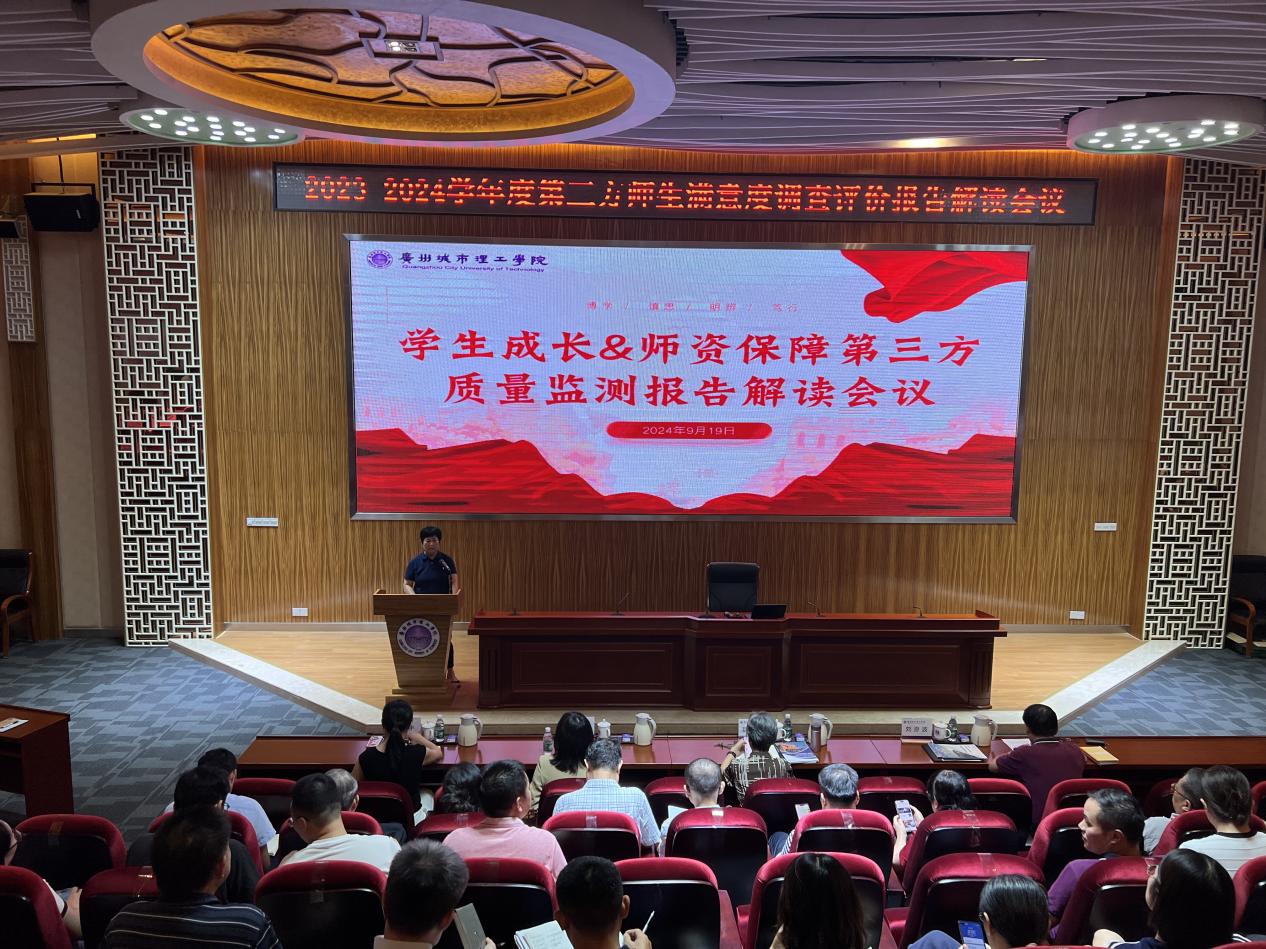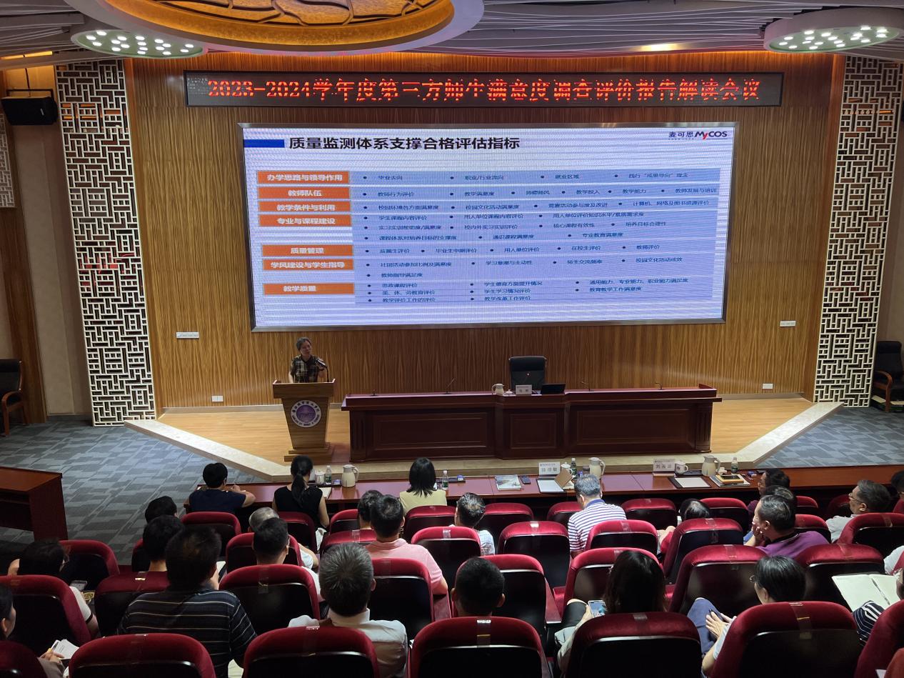 为完善BETVLCTOR伟德在线本科教学质量保障体系,保障和提高人才培养质量,深入了解BETVLCTOR伟德在线师生对学校教育、教学、管理、服务等方面的工作情况,2024年9月19日下午学校在行政楼703会议室组织召开2023-2024学年度第三方师生满意度调查评价报告解读会议。副校长刘洊波、魏德敏,相关机关部处的负责人,各学院(部)的院长、书记、副院长、教研室主任及专业带头人参加。会议由教学质量管理处处长王全迪主持。